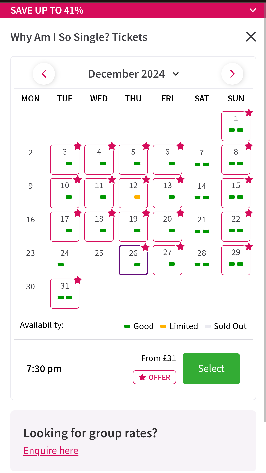 As you can see, it’s only LTD that’s offering sale tickets during the week of Christmas – the perfect time to see a show with family. And there’s something else you should know: Why Am I So Single offers £25 rush tickets via TodayTix, so there’s a better deal to be had if you’re not picky about dates.